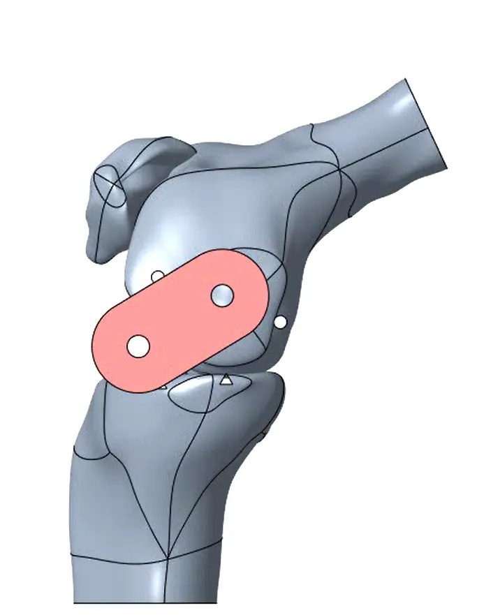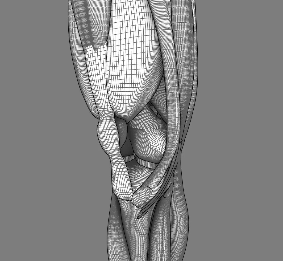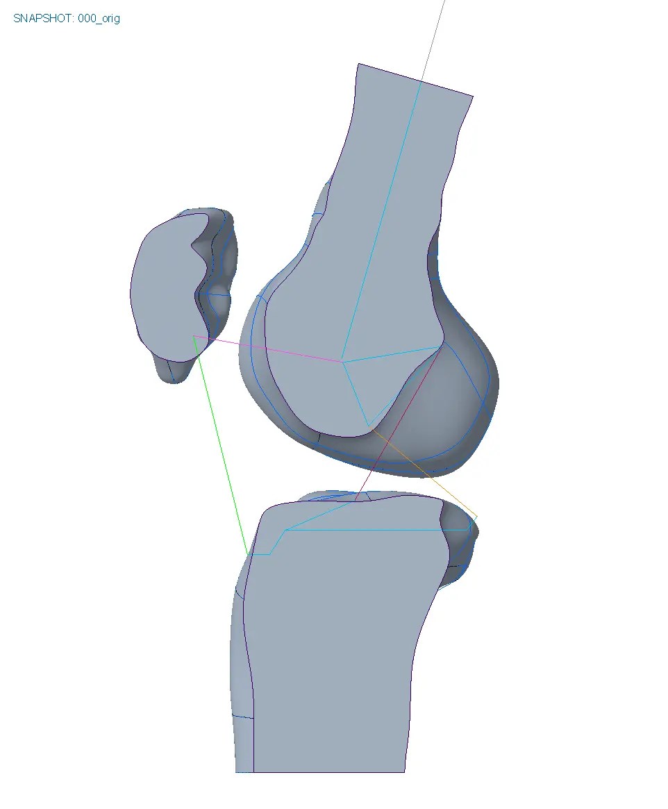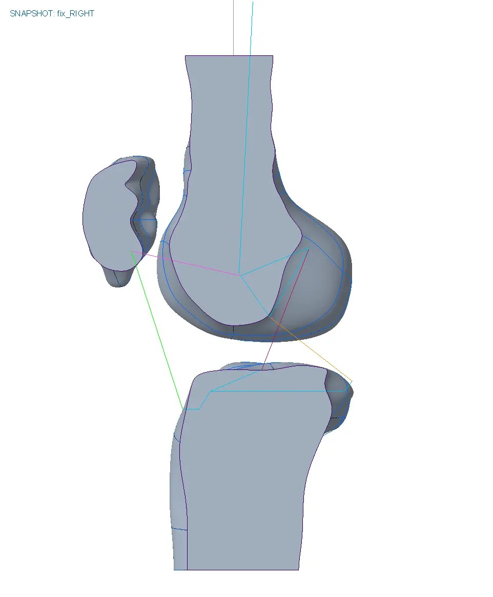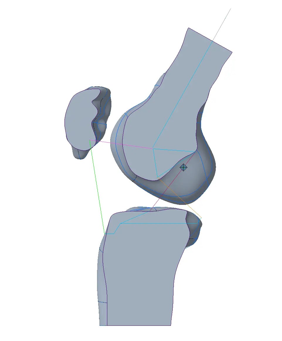 To give a more detailoed picture we built up a motion skeleton to move the bones and used the biomechanics of the knee to place the hinge and to create the design.