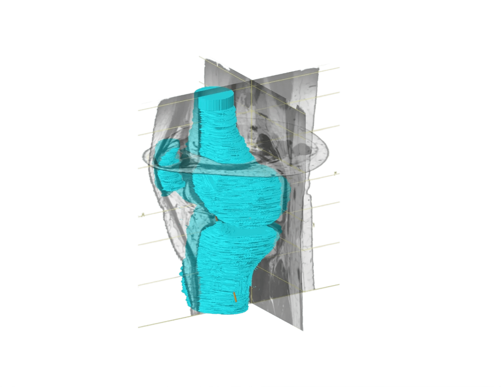 Although the regular orthoses are made by scanning the other shell of the knee, we decided to scan it inside also, to see the bone specificities and soft tissue parameters also.